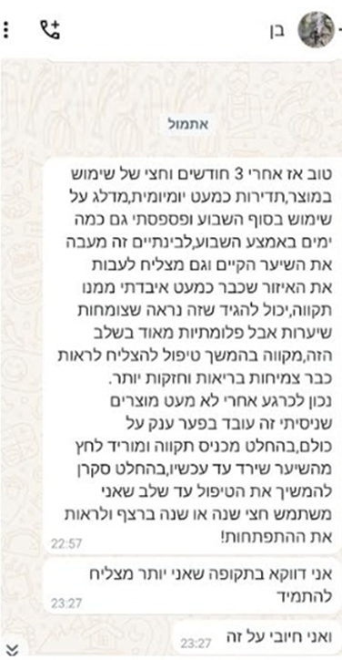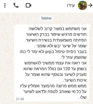 במהלך תקופה ביצעתי עשרות ניסויים ויצרתי מספר רב של נוסחאות שנוסו על בני ובעלי פעם אחר פעם במטרה להגיע לתוצר שיניב את התוצאות הטובות ביותר ובסופו של התהליך הצלחתי ליצור פורמולה ייחודית שלא רק מטפלת בנשירת שיער, אלא אף מעודדת את צמיחתו. היות ופורמולה זו נוסתה בהצלחה על גברים נוספים מהמשפחה וחברים, החלטתי להנגיש אותה באהבה גדולה לכל מי שמחפש פתרון טבעי ובטוח לבעיה זו.